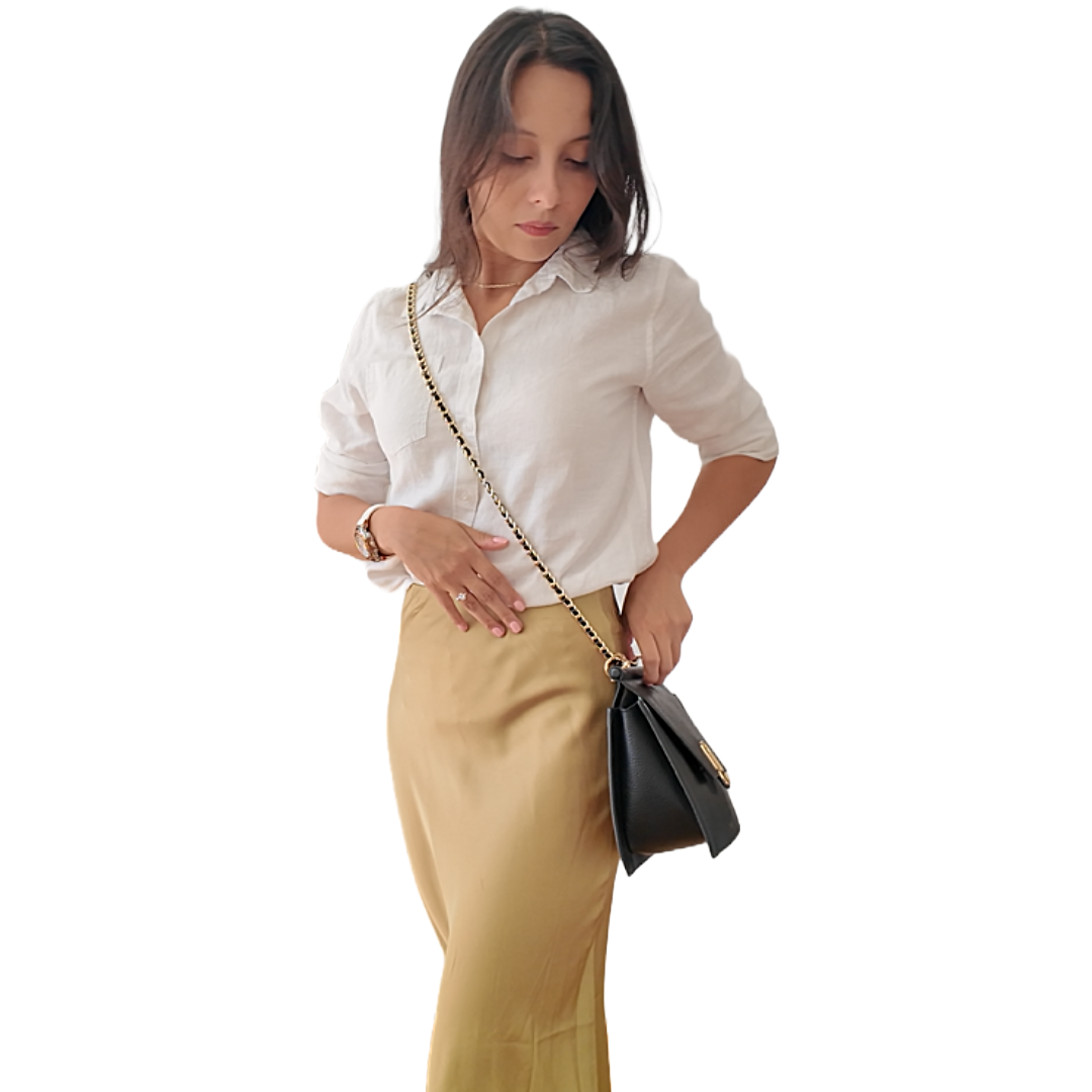 With a saddle-style design, full-grain leather, gold-plated hardware, and premium cotton lining. Spacious, comfortable, and adaptable as a crossbody or shoulder bag. Practical elegance for women with purpose.